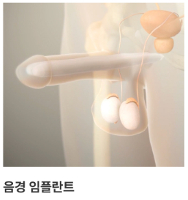 ![]() | 발기부전이 심각한 경우, 음경에 임플란트를 삽입하여 발기를 유지할 수 있도록 돕습니다. 1. 굴곡형 발기보형물 2. 팽창형 발기보형물 |