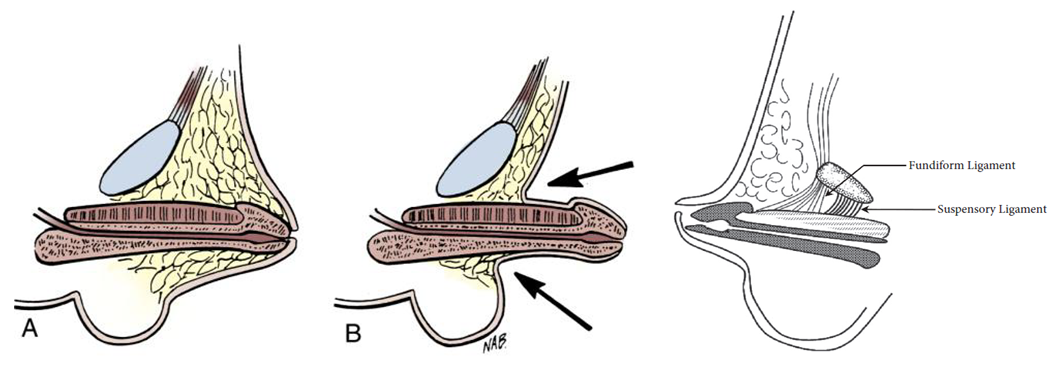 음경과 연결되어 있는 윤상인대 및 현수인대를 부분절제하여 음경이 늘어져보이는 효과가 나타남